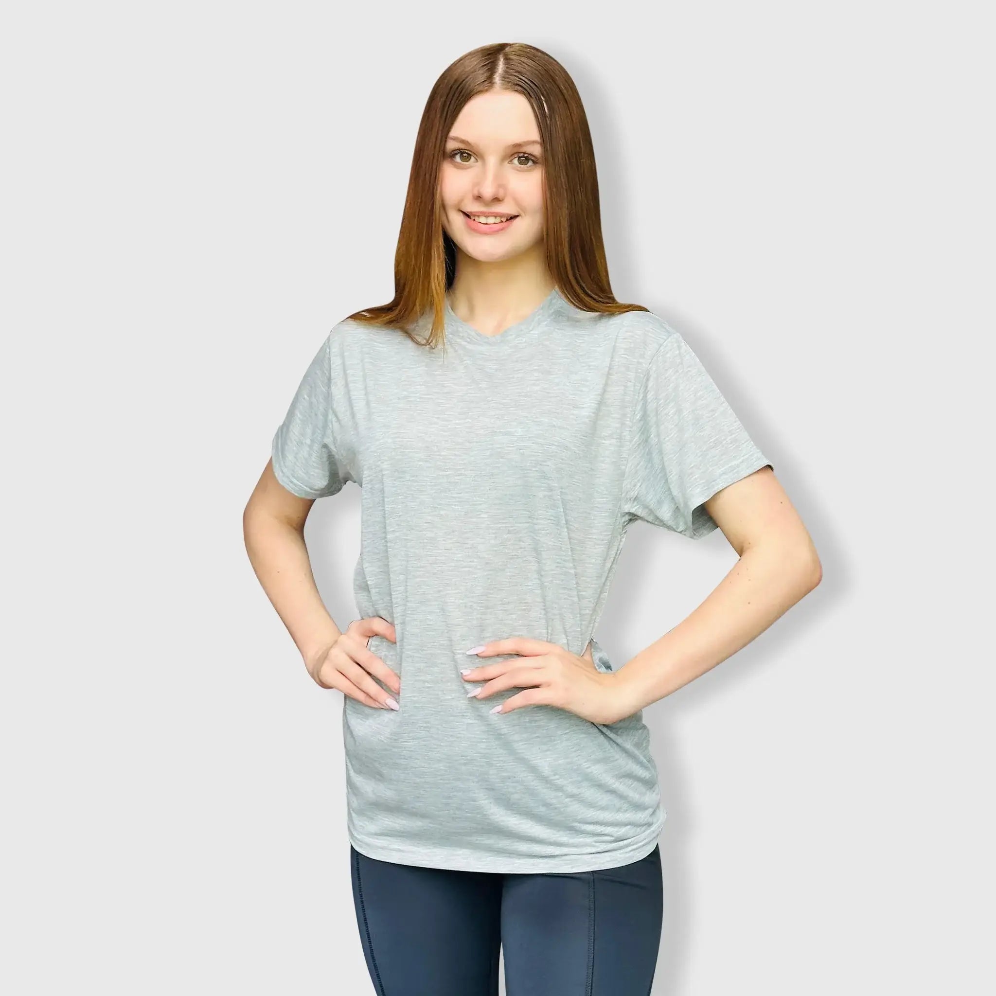 * Adult Polyester Cotton-Feel Tee * Colors: Gray, Light Pink, Light Blue, Tan, Coral, Tiffany, Lavender, Mint, Turquoise * Material: 100% Polyester * Adult Sizes: Small - 3XL * Ribbed crew neck * Standard Size Fitting * Unisex Sizing * Great for sublimation, dtf, heat transfer *Colors on screens can vary from how they look in real life.