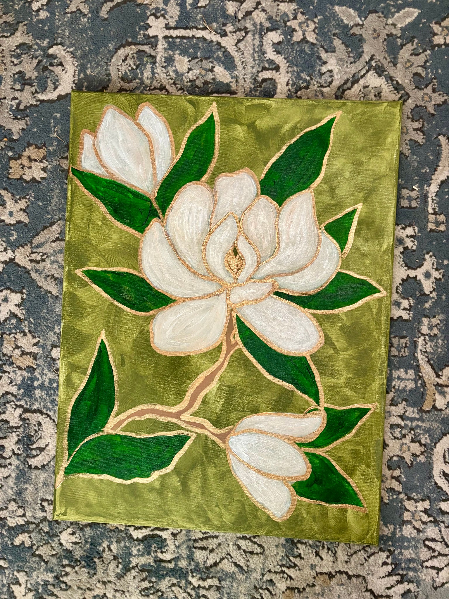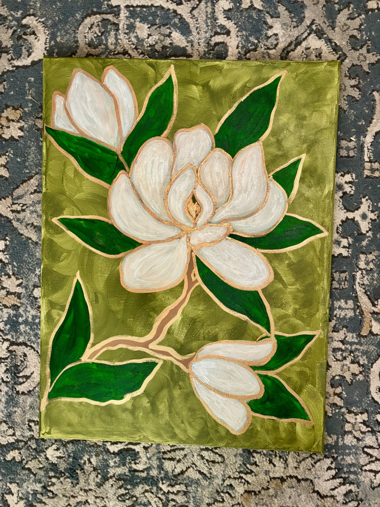 16x24 in size, acrylic, gild and linseed oil composition. This piece was inspired to look like stained glass.